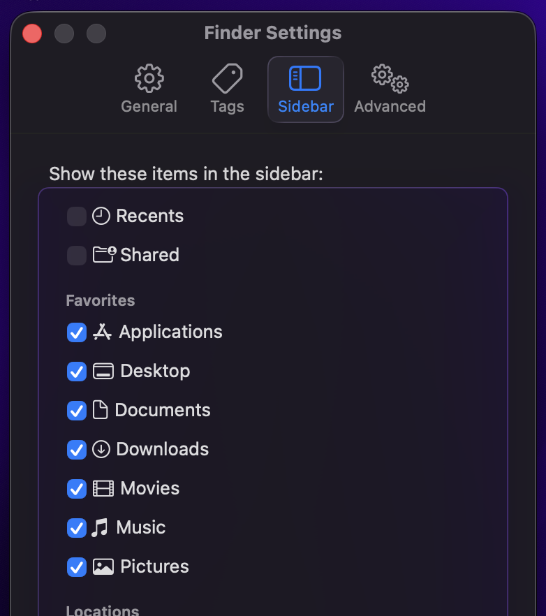 - Don't see it in the sidebar? Press the command and comma keys ( ⌘ + , ), then click the Sidebar tab at the top, and make sure Downloads is checked.