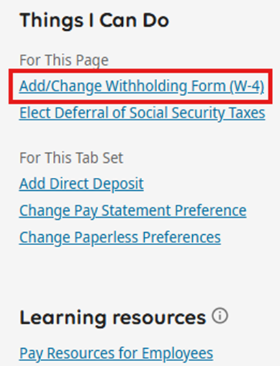 Under Things I Can Do: Click on Add/Change Withholding Form W-4