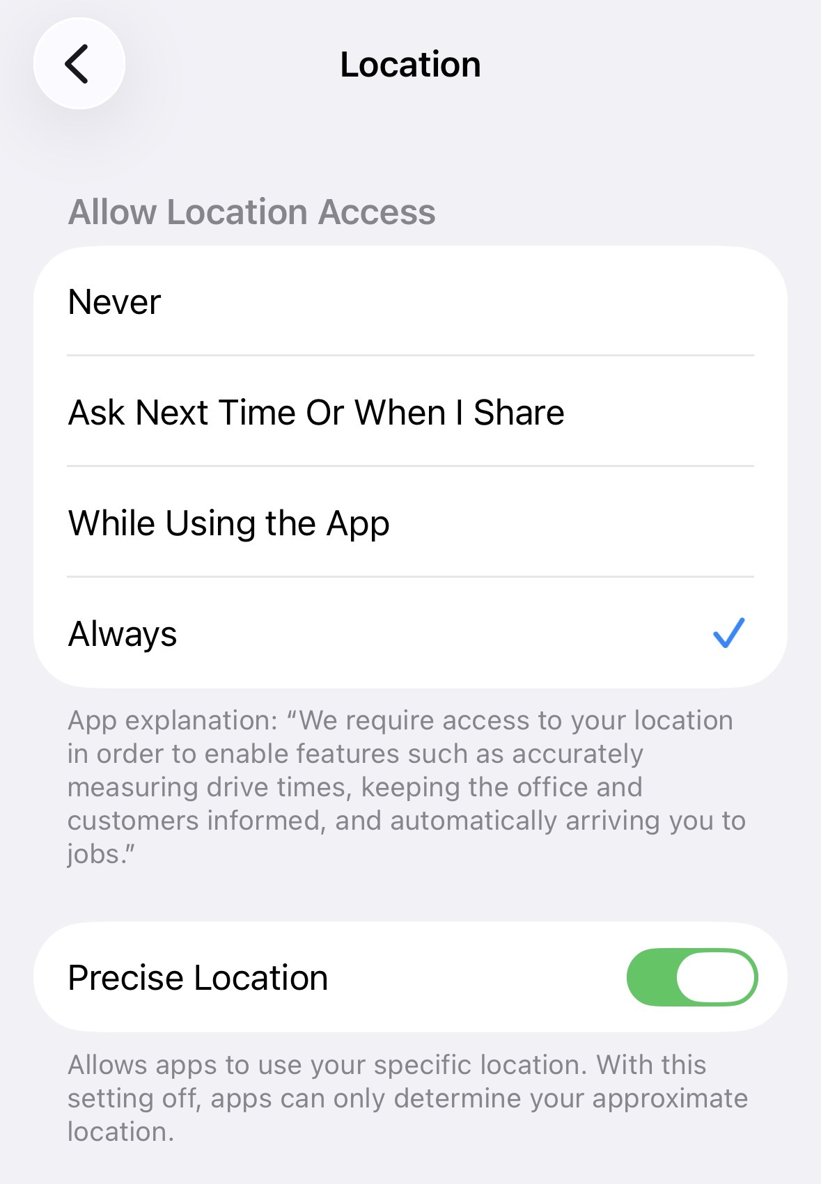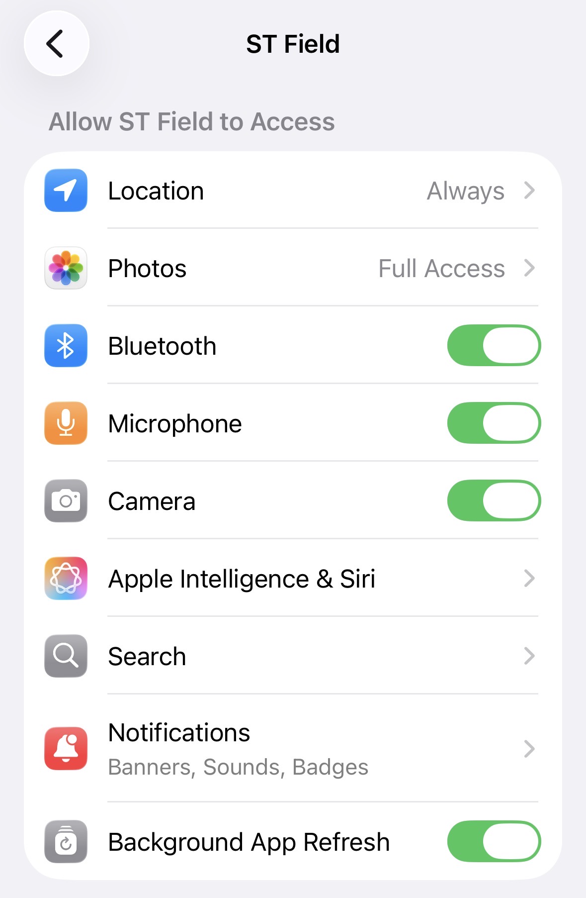A majority of issues involving the ServiceTitan Field app can be resolved by ensuring that it has access to everything it needs permission-wise. Ideally, that would mean you've enabled all settings available.